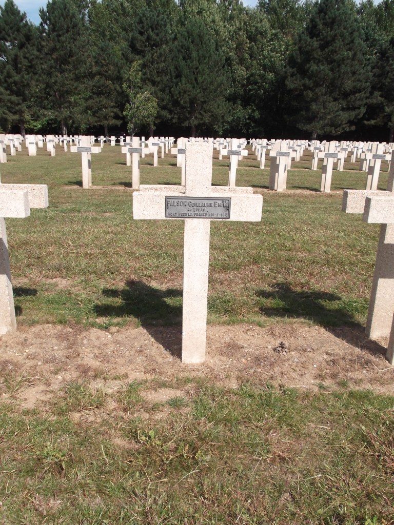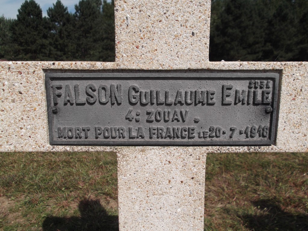 Mais pas pour le soldat Guillaume Emile FALSON qui fait parti des 17 disparus, tombé dans les bois de Villers-Hélon dans l’Aisne le 20 juillet, loin de chez lui, sur une terre qu’il ne connaissait pas et qu’il était pourtant venu aider à défendre, jusqu’à lui donner sa vie.