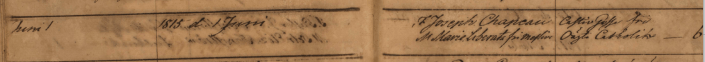 Joseph CHAPEAU a un fils de couleur libre, Jean, né et baptisé le 1er juin 1815 de Marie LIBERATA, une mestive libre.