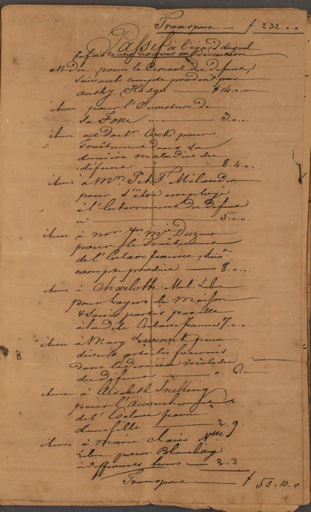 A Jean Marie DUZANT, 8 piastres pour le traitement de l’esclave Jeanne, 8 piastres,