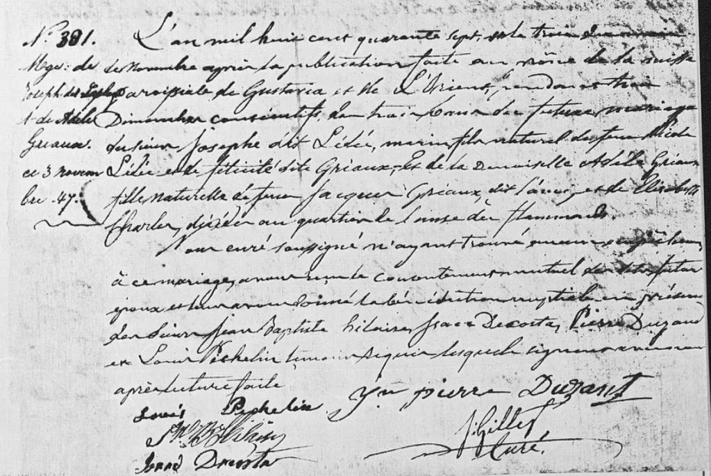 Joseph et Adèle se marient le 3 novembre 1847, et le même jour, Amélie et Théodore sont légitimés.
