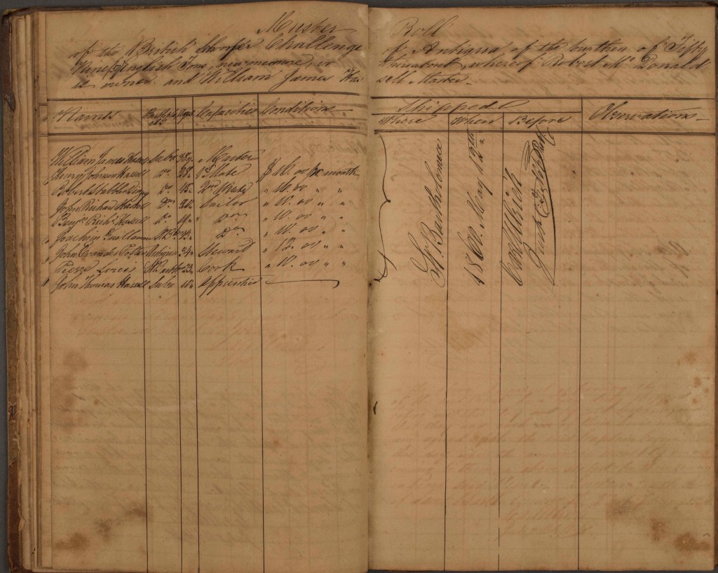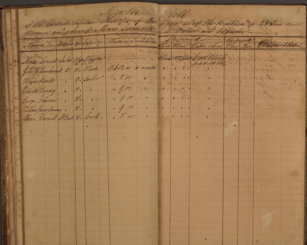 Below, a sample of crew rolls with Sabans names on ships calling Gustavia between 1834 and 1860.