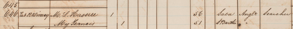 On the 30th of November 1850, Moses Leverock HASSEL and Mary Frances WOOD send a request to the Governor of Saint-Barthelemy. He is a native of Saba, aged thirty-seven years and she is a native of Saint-Barth and thirty-two of age. They add « that being under a long engagement, they now propose, with your Excellency’s sanction, to get themselves united in marriage. That having paid the church dues as per accompanying receipt, they humbly pray that your Excellency will be pleased to cause their banns of marriage to be advertised in the usual way in the absence of a Protestant Minister on the island, they being stuck up on one of the doors of the Lutheran church in this town, three weeks from this day and further humbly pray that this banns being duly published, and no impediment offered, thereto, your Excellency will be further pleased to allow the Reverend Mr. J. A. ROCK, minister of the Church of England expected here shortly, to unite them in marriage … ».