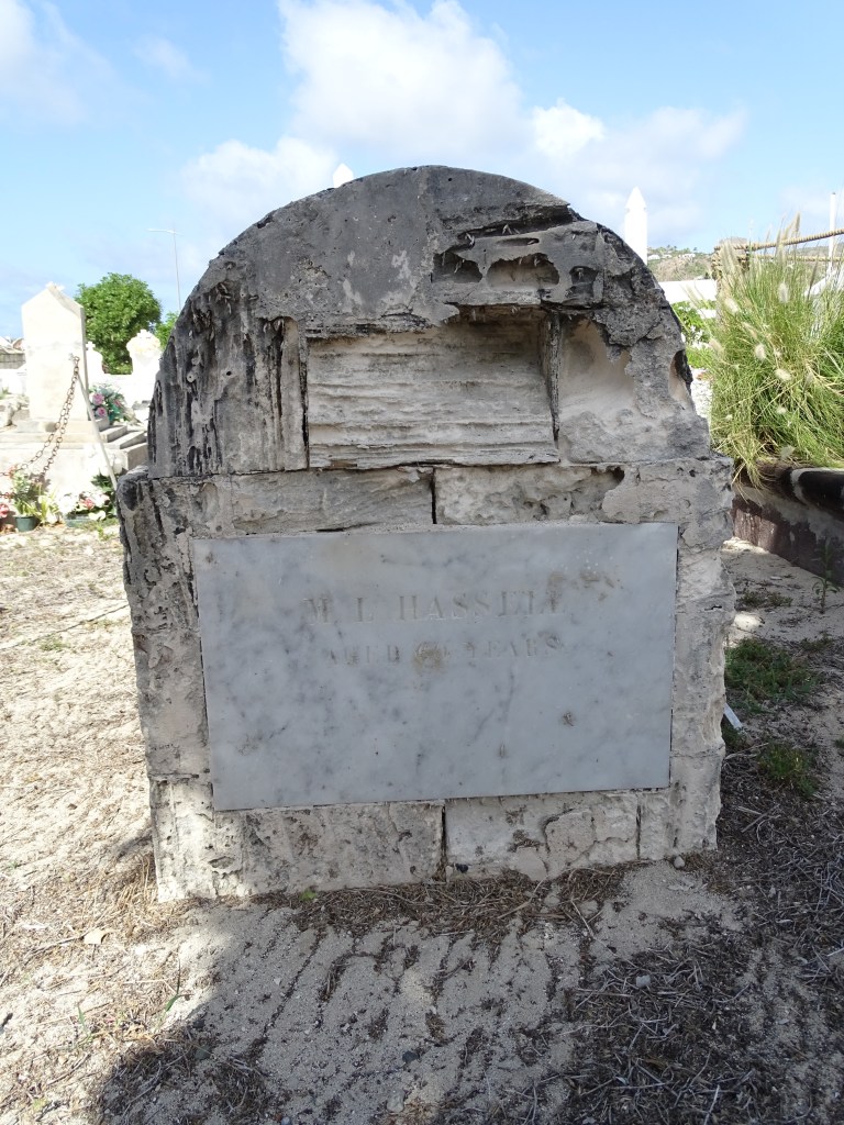 Moses Leverock HASSELL died in Gustavia on the 6th of May 1873. The ceremony was held at the Anglican church the very same day, and he was buried in the cemetery of Saint-Jean. Despite being in very bad conditions, his tombstone, with a very special shape and style, can still be seen.