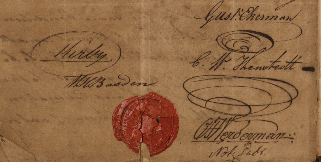 Le 16 avril 1816, Gustaf EKERMAN, commissaire priseur à Saint-Barthélemy, loue pour un an une habitation qu’il possède à Mr Charles William THENSTEDT, notaire à Gustavia. Les deux sont Suédois, le premier marié avec Aletta HASSELL de Saint-Eustache avec une très nombreuse descendance, et le deuxième avec Catherine Frances BASDEN née à Saint-Christophe.