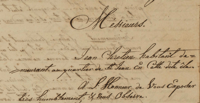 « Jean CHRETIEN, habitant, demeurant au quartier de Saint-Jean en cette île,
