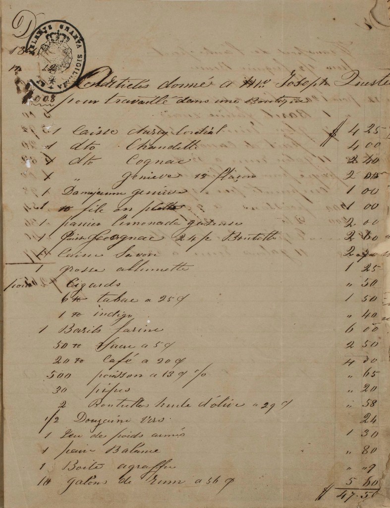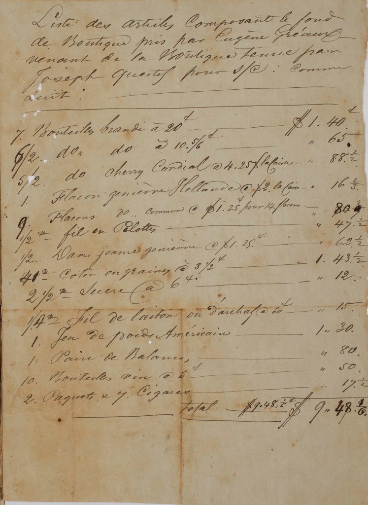Eugène GRÉAUX a donné les marchandises ci-dessous pour l’ouverture de la boutique :