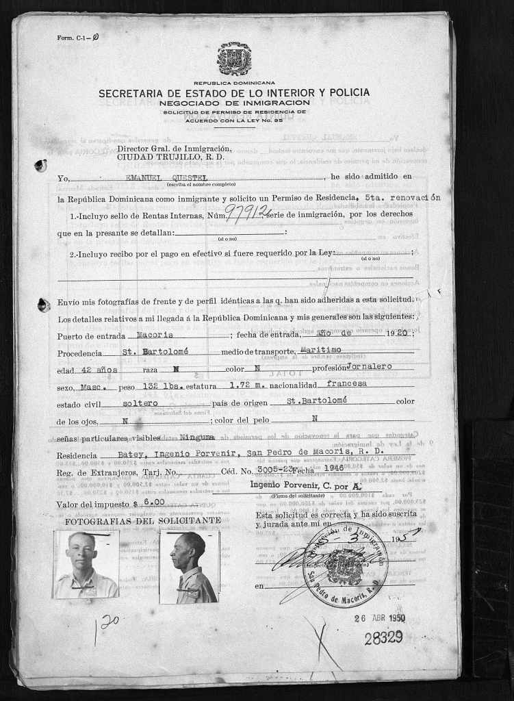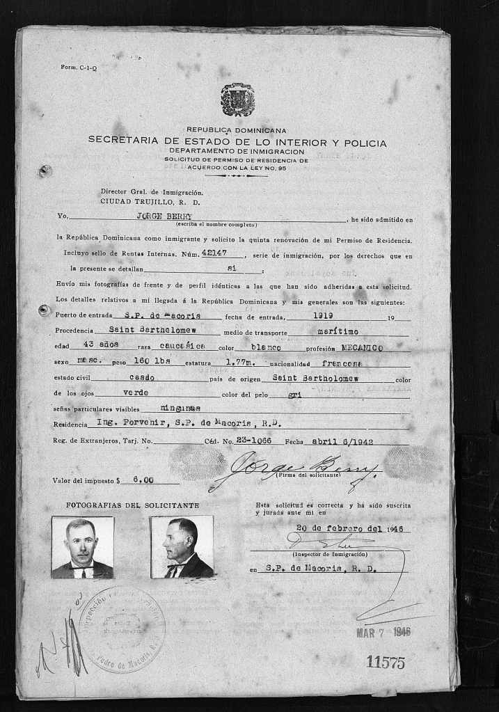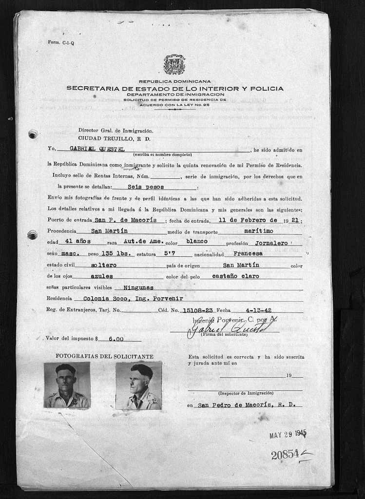 Il est arrivé par Ciudad Trujillo en 1929, il est commerçant et il est déjà marié en 1949, date du document.