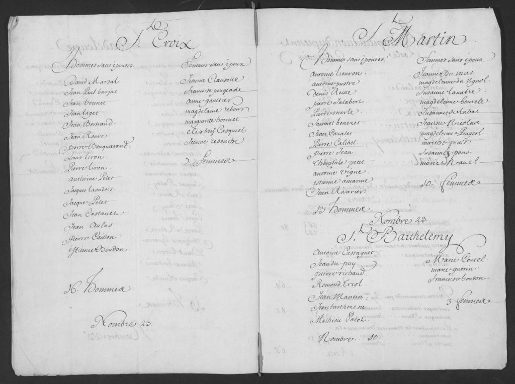 Sainte-Croix, avec seize hommes et sept femmes non mariés,