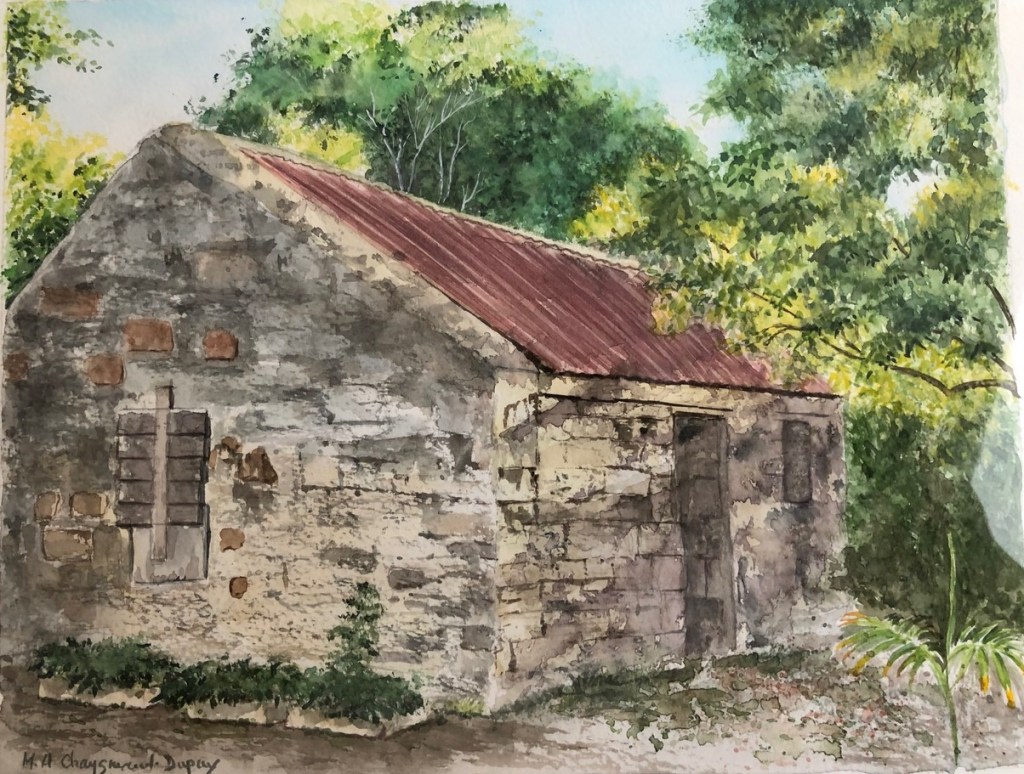 aquarelle par Marie-Anne Chaygneaud Dupuy – reproduction de la « case à vent » dans laquelle Edouard « Agnus » GARRIN vivait à Lorient