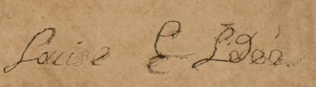 Le 24 octobre, Louise Emélie LÉDÉE signe un courrier envoyé à Monsieur Jean Louis L’ORANGE au Public. Je ne sais pas qui l’a écrit.