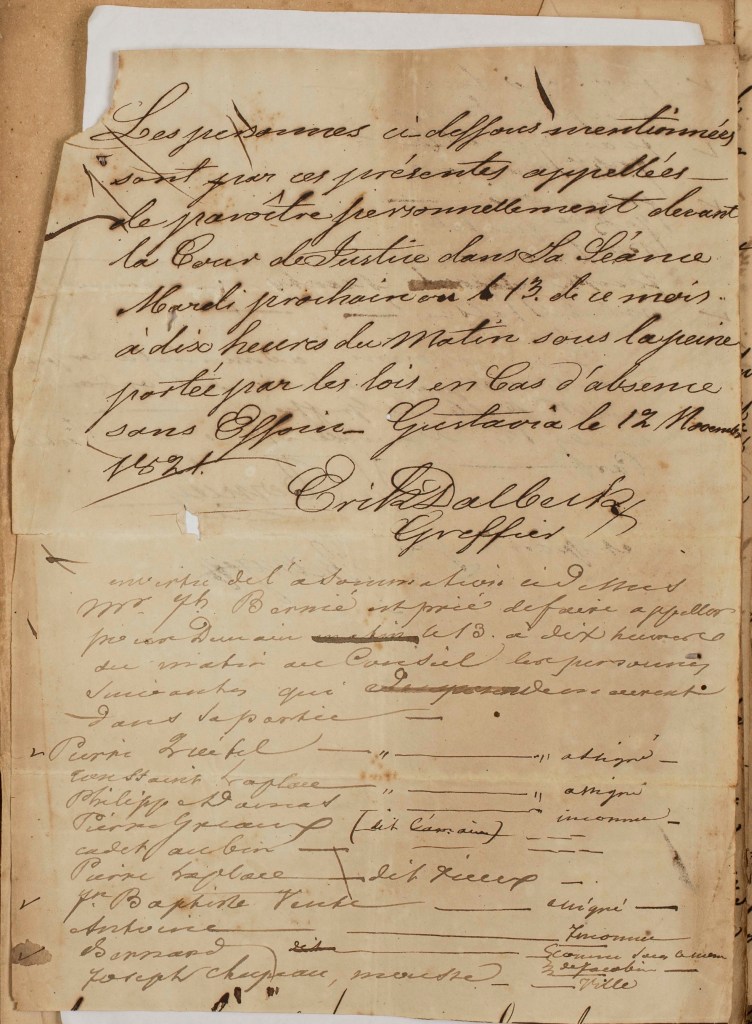 On fait venir ensuite le dénommé Jacobin, mais il indique qu’il est esclave. Il quitte la barre.