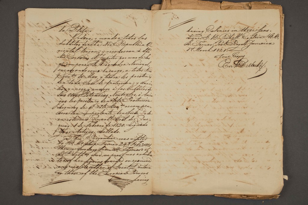Le Gouverneur indique qu’on n’a pas de nouvelles du Mexique, « l’opinion générale est que la révolution va bon train. La Colombia (Venezuela et Nouvelle Grenade) est entre les mains des insurgés hors quelques places fortes comme Carthagène et Cumana. A Buenos Aires, c’est toujours la même confusion, et on n’est pas encore assurés de la prise de Lima ».