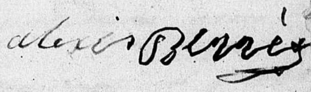Alexis Bernier est né à Saint-Barthélemy le 19 mars 1779, fils de Jacques Prosper Bernier (né à Barrouallie, île de Saint-Vincent) et de Magdelaine Reine Laplace.