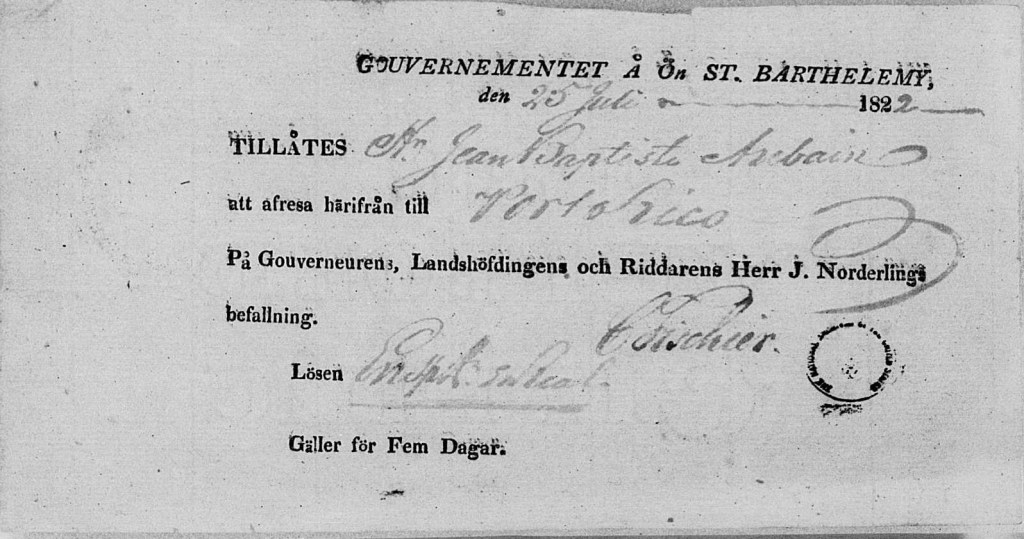 Dans un document du 2 juin 1829, Juan Bautista Berne reçoit l’autorisation de séjourner à Porto Rico pour deux mois. Il est arrivé en présentant un passeport de l’île de Saint-Barthélemy. Je ne sais pas qui il est, impossible d’identifier ses parents pour l’instant.