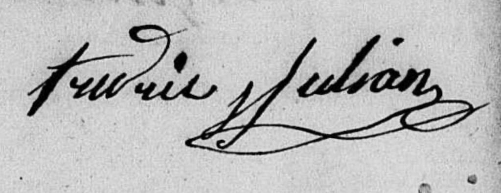 Frédérique Julien témoigne également. Il est capitaine de bateau et est né à Saint-Chamas en 1791. Il a épousé Suzanne Aubin en juin 1819 à Saint-Barthélemy, et il semble résider à Patillas depuis quatre ou cinq ans. Suzanne est une fille de Santiago Aubin, « père ». Je ne pense pas qu’ils aient eu d’enfants (Frédérique n’est pas mentionné dans la succession de Santiago, alors que Suzanne est décédée depuis au moins 1824).