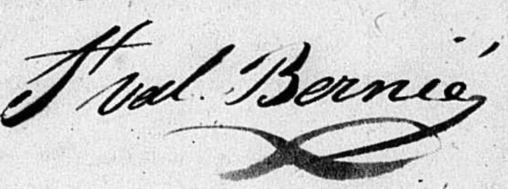 “Certifions à ceux à qui il appartiendra que le nommé Sainval Bernier, porteur des présentes, âgé d’environ vingt-deux ans, est né dans cette isle et que je n’ai point entendu de plaintes contre sa conduite.