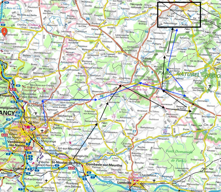 J’ai vu Morhange, Conthil, Riche, Metzing et Haboudange. J’ai vu ces villages minuscules. Cette petite pente douce qui monte de Conthil à Morhange. On comprend mieux cette boucherie : nos soldats avançant en colonnes, exposés au feu de l’ennemi, ses canons positionnés sur les hauteurs. Un véritable tir au canard.