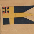Planches représentant des modèles de pavillons de la marine suédoise en 1844 en fonction du grade du Commandant de bord. FRANOM FSB 298